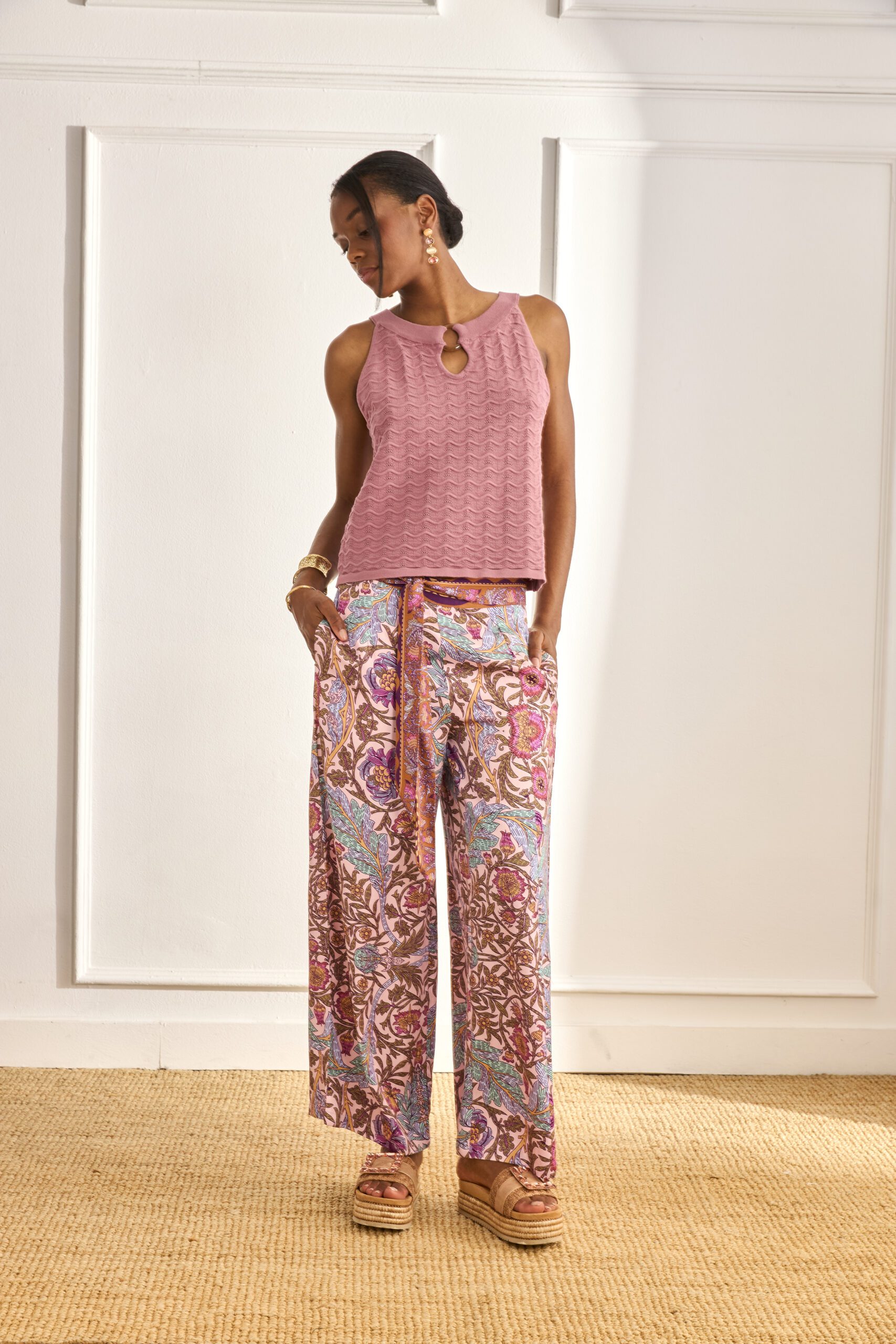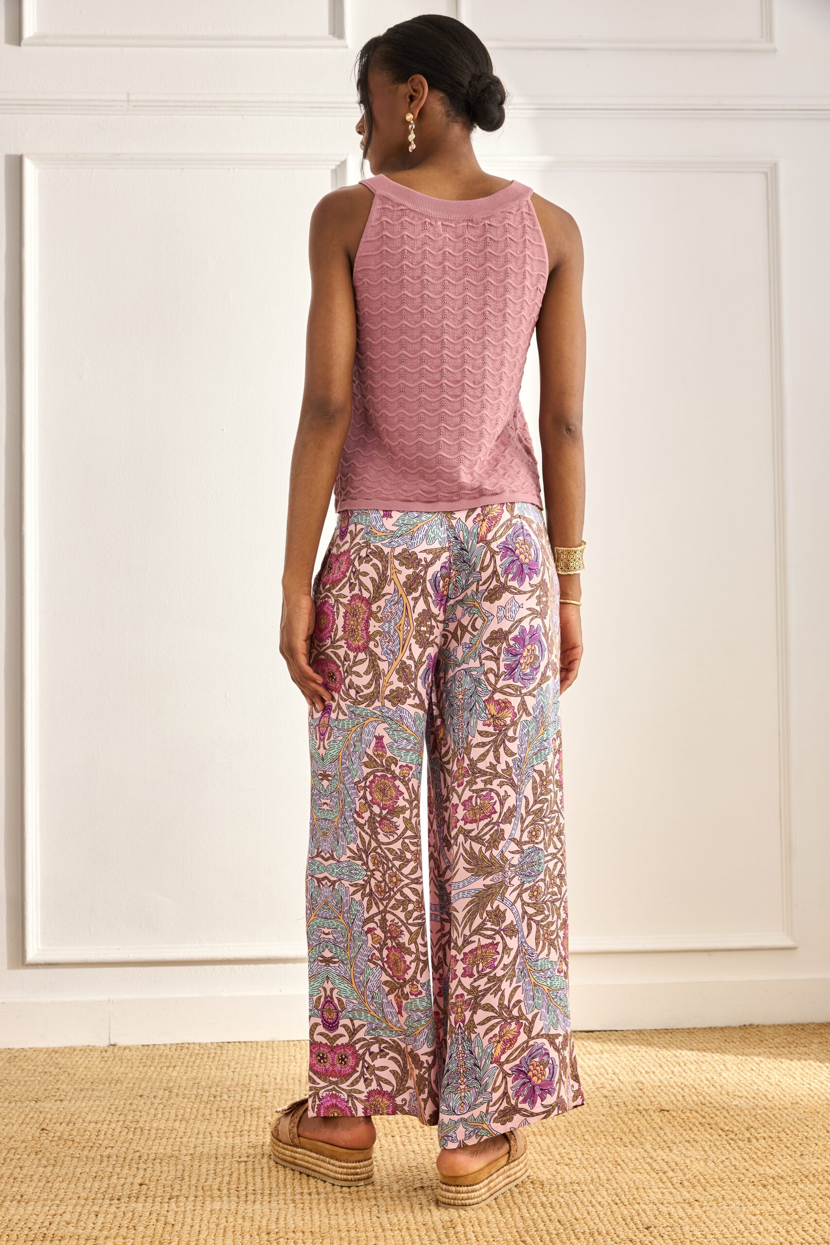 PANTALÓN ESTAMPADO FLORAL MULTICOLOR – ROSA